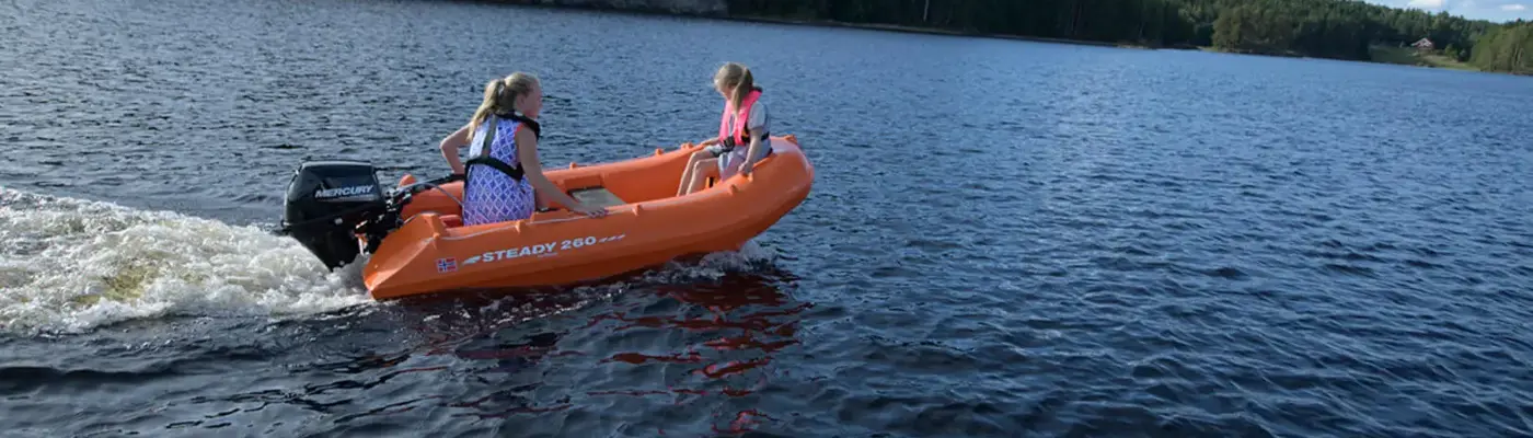 260 Steady by Pioner er lettplanende, stabil og god å ro. Steady-båtene har lenge vært populære både som arbeids- og familiebåter.